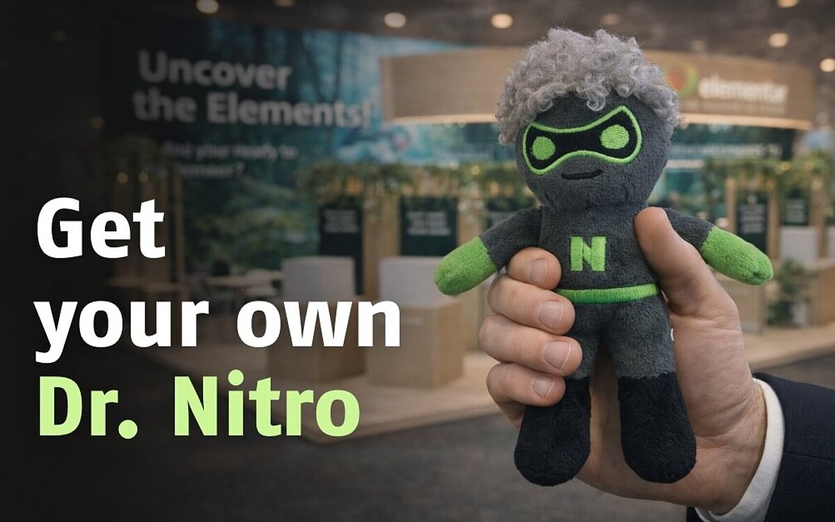 Melden Sie sich für den ELEMENTAR Newsletter an, zeigen Sie Ihre Bestätigung an unserem Stand vor und nehmen Sie Dr. Nitro als persönlichen Begleiter mit auf Ihre analytische Reise.