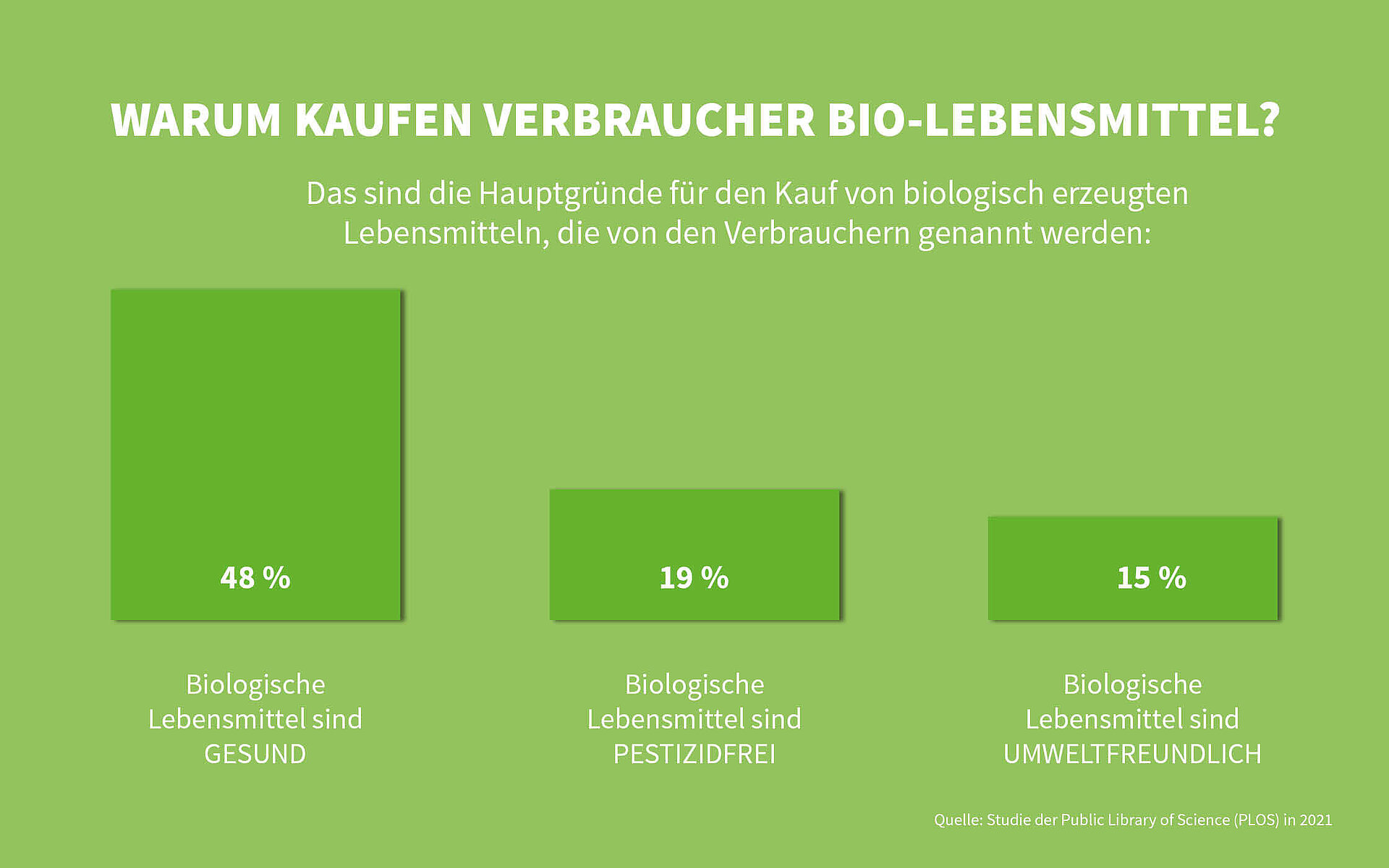 Mit seiner Meinung ist er nicht allein. Im Rahmen einer 2021 von der Public Library of Science (PLOS) durchgeführten Studie wurden Verbraucher gefragt, warum sie sich für biologisch erzeugte Lebensmittel entschieden haben. Als Hauptgründe gaben die Befragten an, dass diese Produkte „gesund“ (48 %), „pestizidfrei“ (19 %) und „umweltfreundlich“ (15 %) seien. Eine andere, in der Fachzeitschrift „Agriculture“ veröffentlichte Studie kam zu dem Schluss, dass Verbraucher als „Bio“ gekennzeichneten Lebensmitteln mehr Vertrauen entgegenbringen und diese als Beitrag zur Unterstützung einer nachhaltigen Entwicklung betrachten.